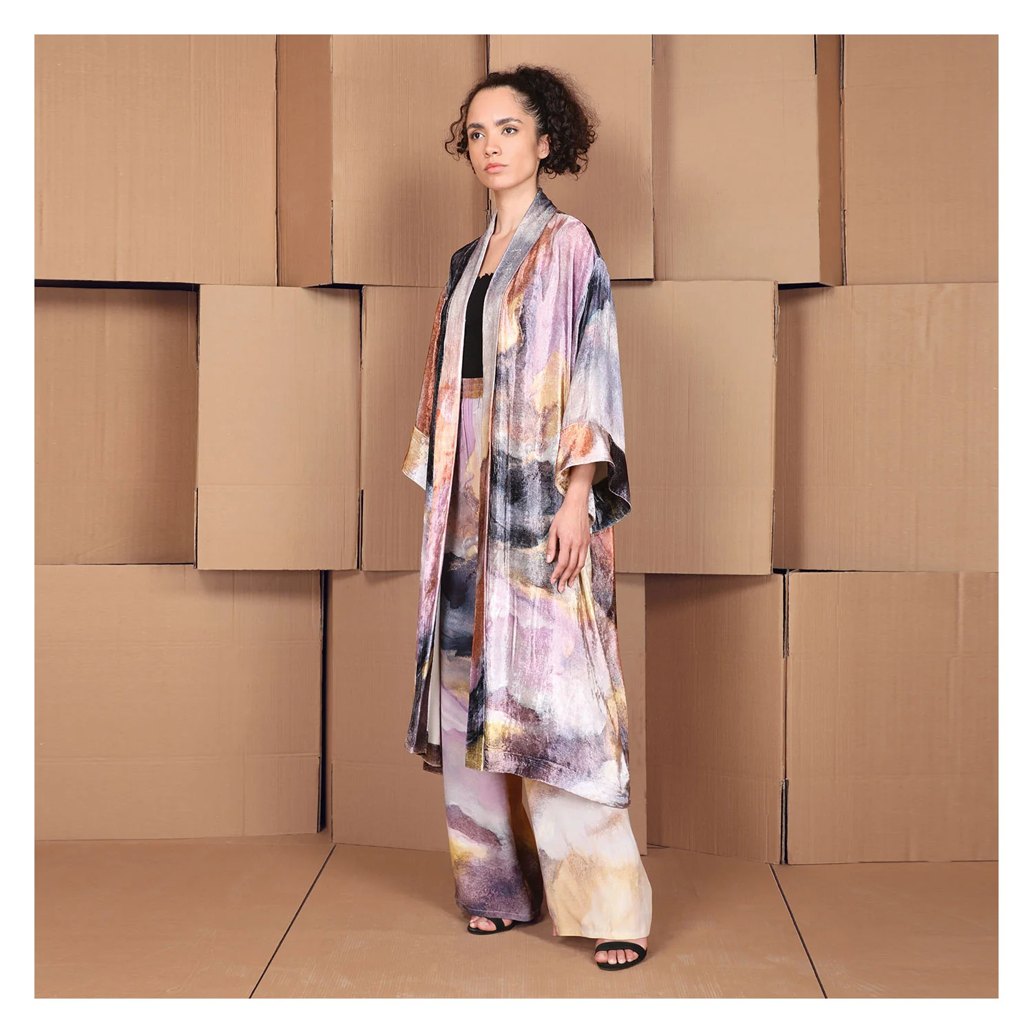 Enjoy the captivating Ekaterina coverup. Made in a soft velvet and printed in a watercolor lavender, you'll love how comfortable this soft fabric feels on your skin. Perfect to wear over your favorite outfit, that you can take from one destination to the next.