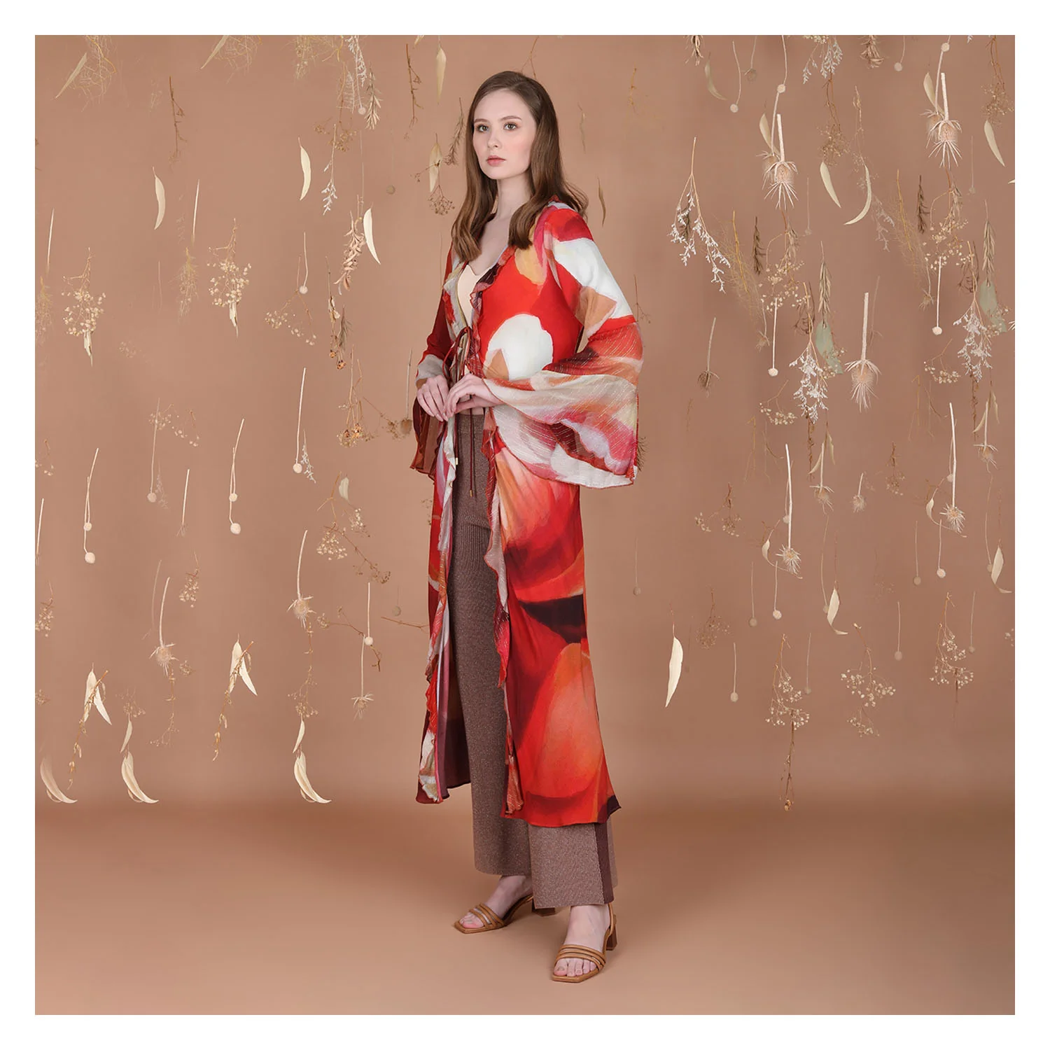 This coral colored cover up will make you the belle of the beach with its whimsical petal print and flirty frills. The long, flowing silhouette flatters your figure while the full, bell-shaped sleeve adds a touch of drama. Stay cool and chic all summer long in this breezy beach side must-have. Slip it on over your swimsuit for instant style and sun protection. With the LOSLIYA COVERUP, you'll be vacation-ready wherever your travels take you!